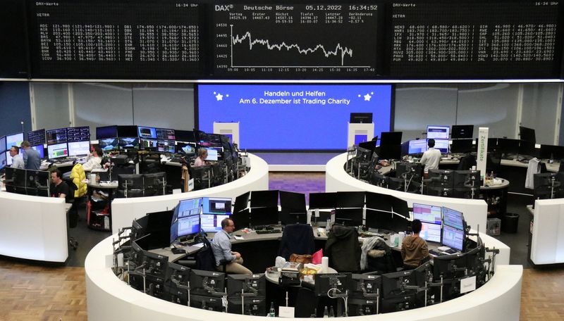 European shares fell on Monday, as investors braced for interest rate decisions from the U.S. and European central banks later this week, while rising COVID-19 infections in China after restrictions were eased also weighed on sentiment.