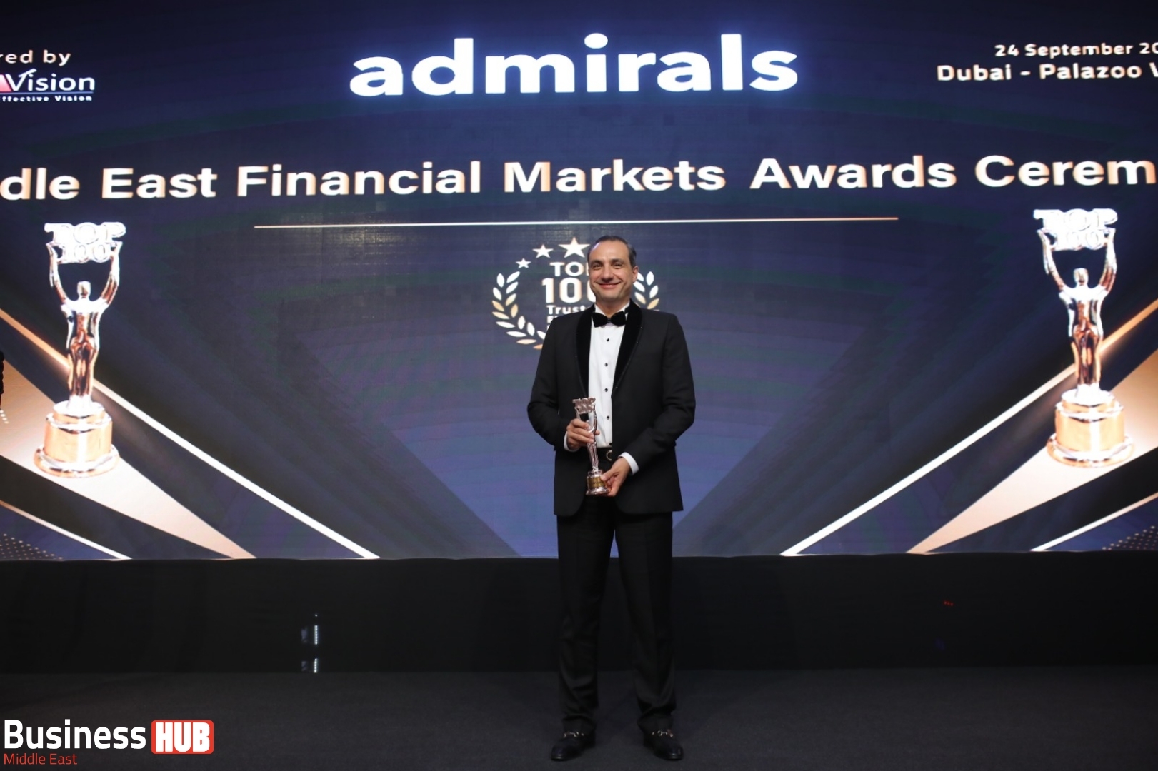 Dubai, September 24 - In a remarkable achievement, Admirals , a leading brokerage firm, was honored with the prestigious "Top Trusted Broker" award at the Middle East Financial Markets Awards held at the Palazzo Versace Hotel in Dubai. The event, organized by Smart Vision, brought together industry leaders and professionals to recognize outstanding achievements and leadership in the financial sector.