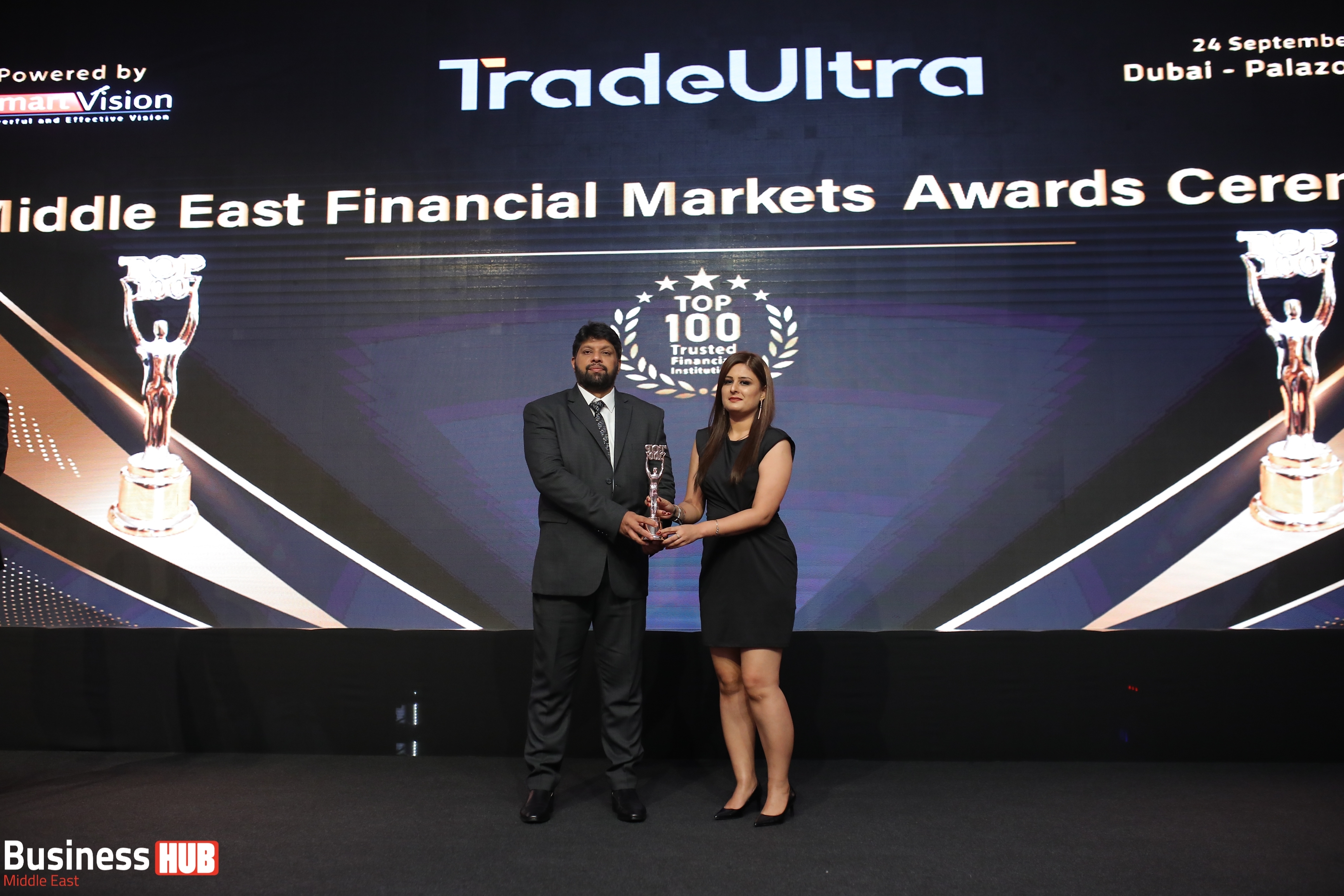 TradeUltra, a leading financial services provider, has been honored with the prestigious "Top Trusted Broker" award at the esteemed event organized by Smart Vision. The awards ceremony, held at the renowned Plazo Versace Hotel Dubai, recognized TradeUltra's unwavering commitment to excellence, transparency, and innovation in the financial sector.